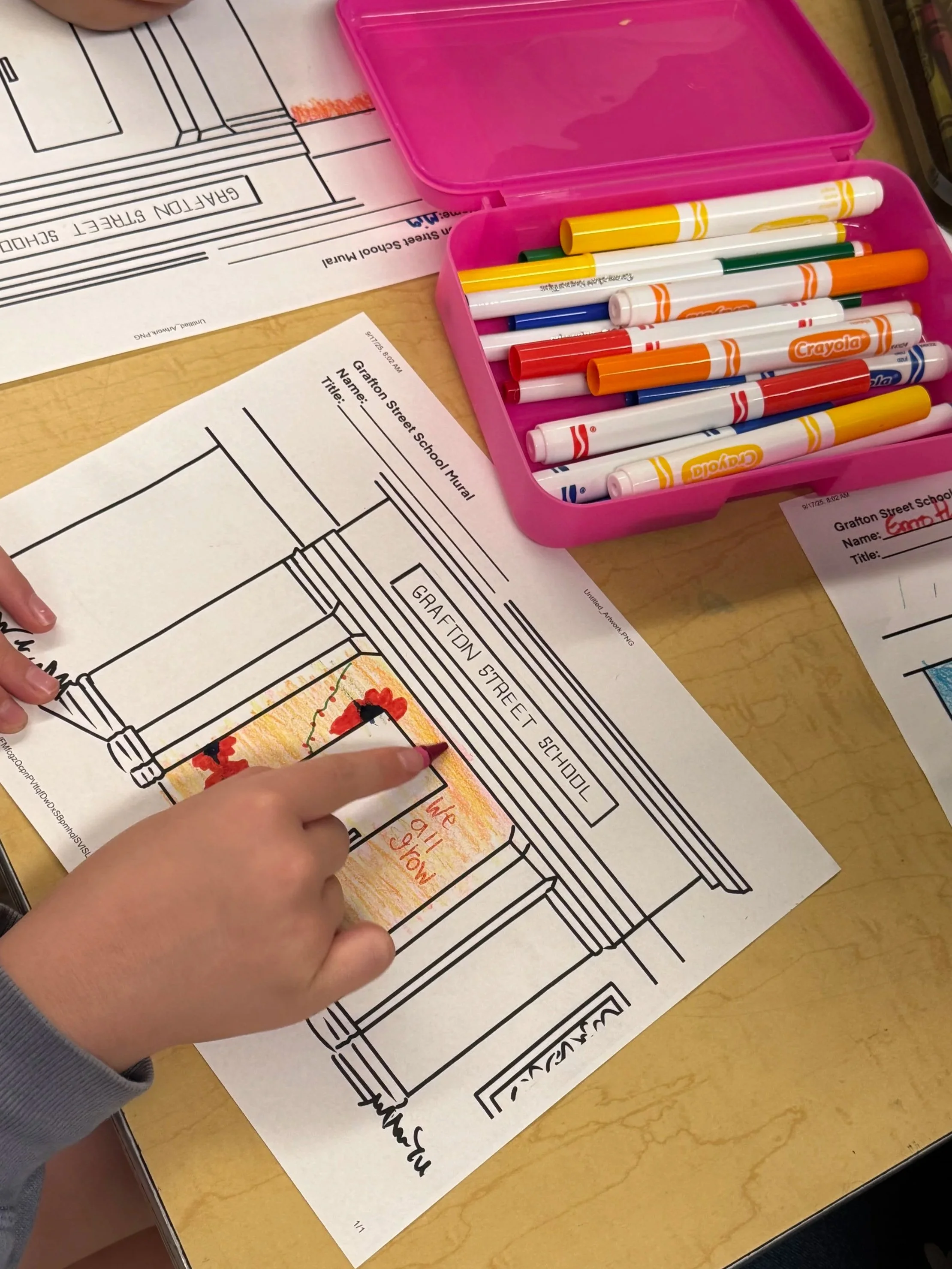 Through collaborative listening sessions, children and teachers help shape the themes and designs for each mural, while local artists bring those ideas to life, assisting, designing, and installing the artwork to create a true community vision. This process not only builds pride and ownership among students but also promotes equity by intentionally hiring artists from the neighborhoods these schools serve.