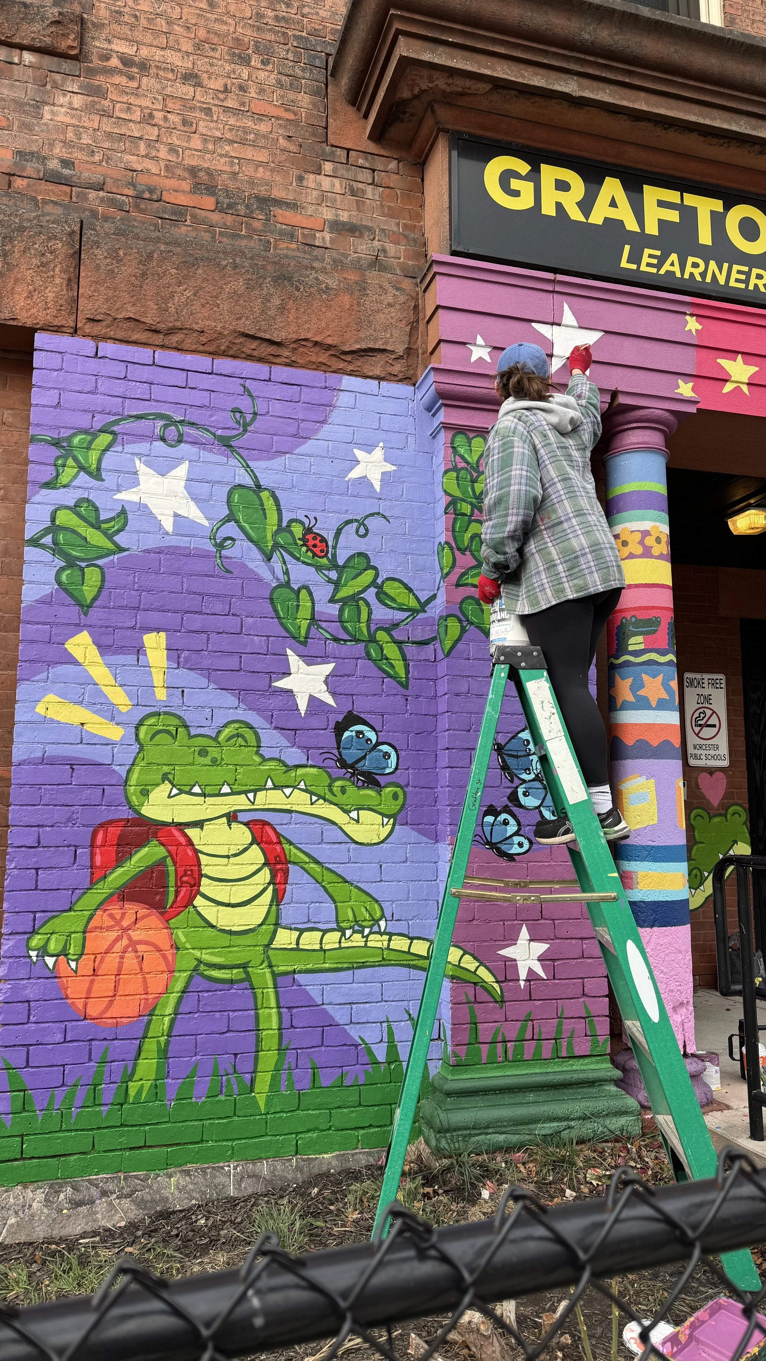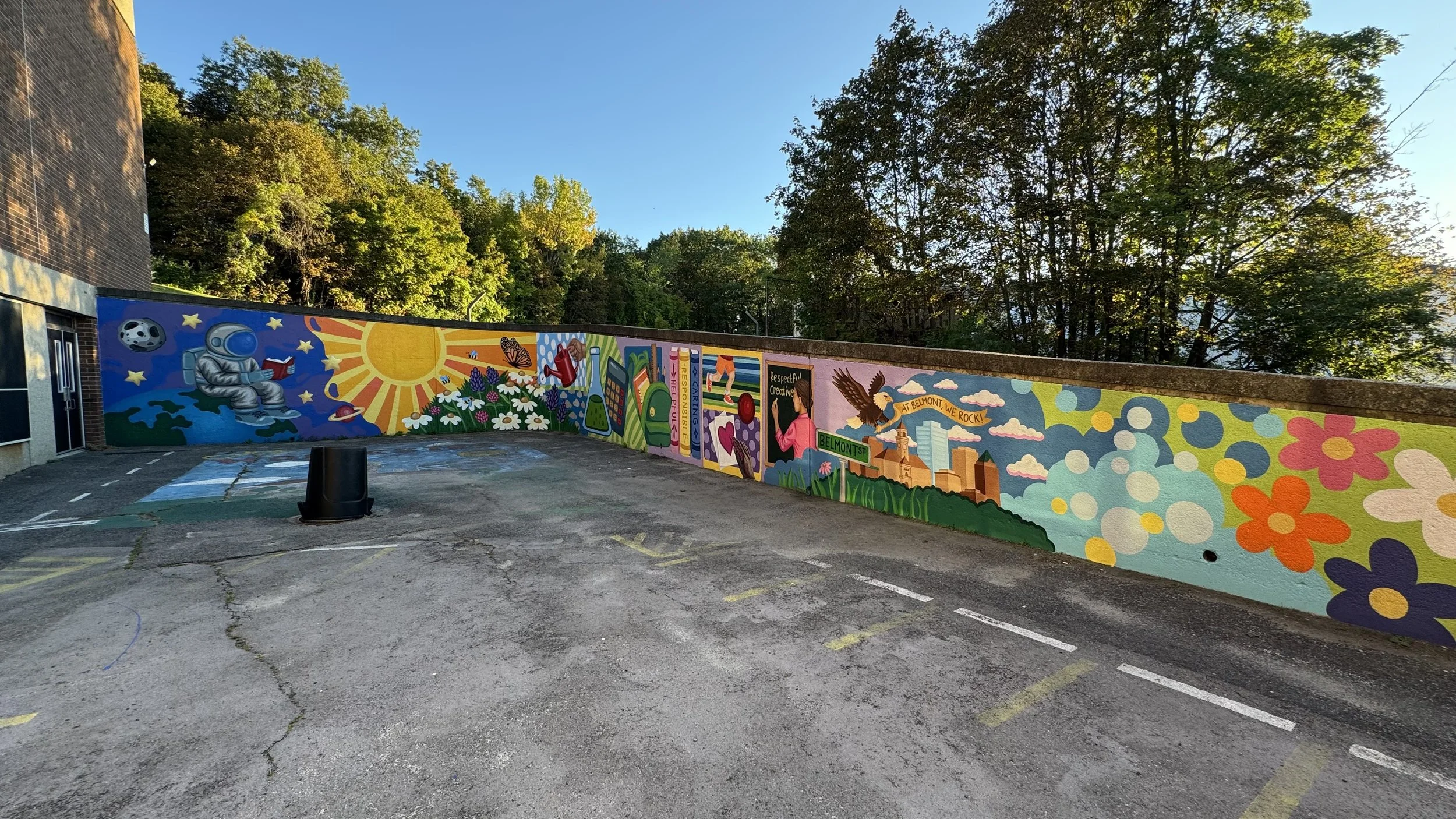 The first murals were created at Union Hill School and Belmont Street Community School, both in Worcester, MA. These murals mark only the beginning, I will continue to grow Bright Futures, bringing murals to more schools, and expanding this vision of joy, empowerment, and community pride.